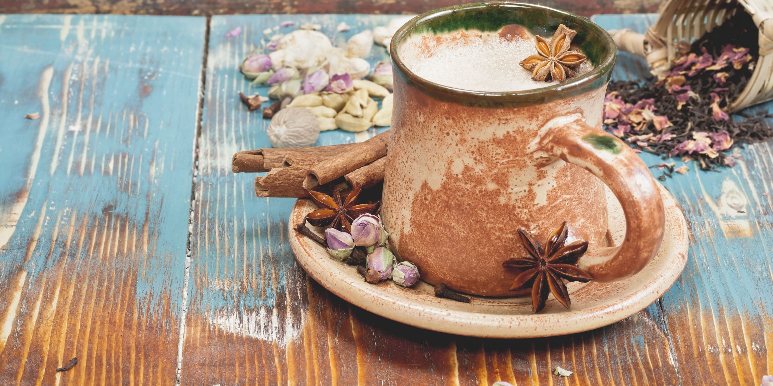 Le Masala Chai est un thé épicé traditionnel de l’Inde à base de thé noir avec une variété d’épices aromatiques, du lait et un édulcorant. Le mot «masala» signifie «mélange d’épices» et «chai» signifie «thé». La recette peut légèrement varier selon la région et les préférences personnelles, mais elle inclut généralement des épices comme la cannelle, la cardamome, le gingembre, les clous de girofle et le poivre noir. Nous partagerons une version sans caféine, donc une infusion, et sans sucre, mais nous vous donnerons des suggestions pour l’adapter à votre goût.